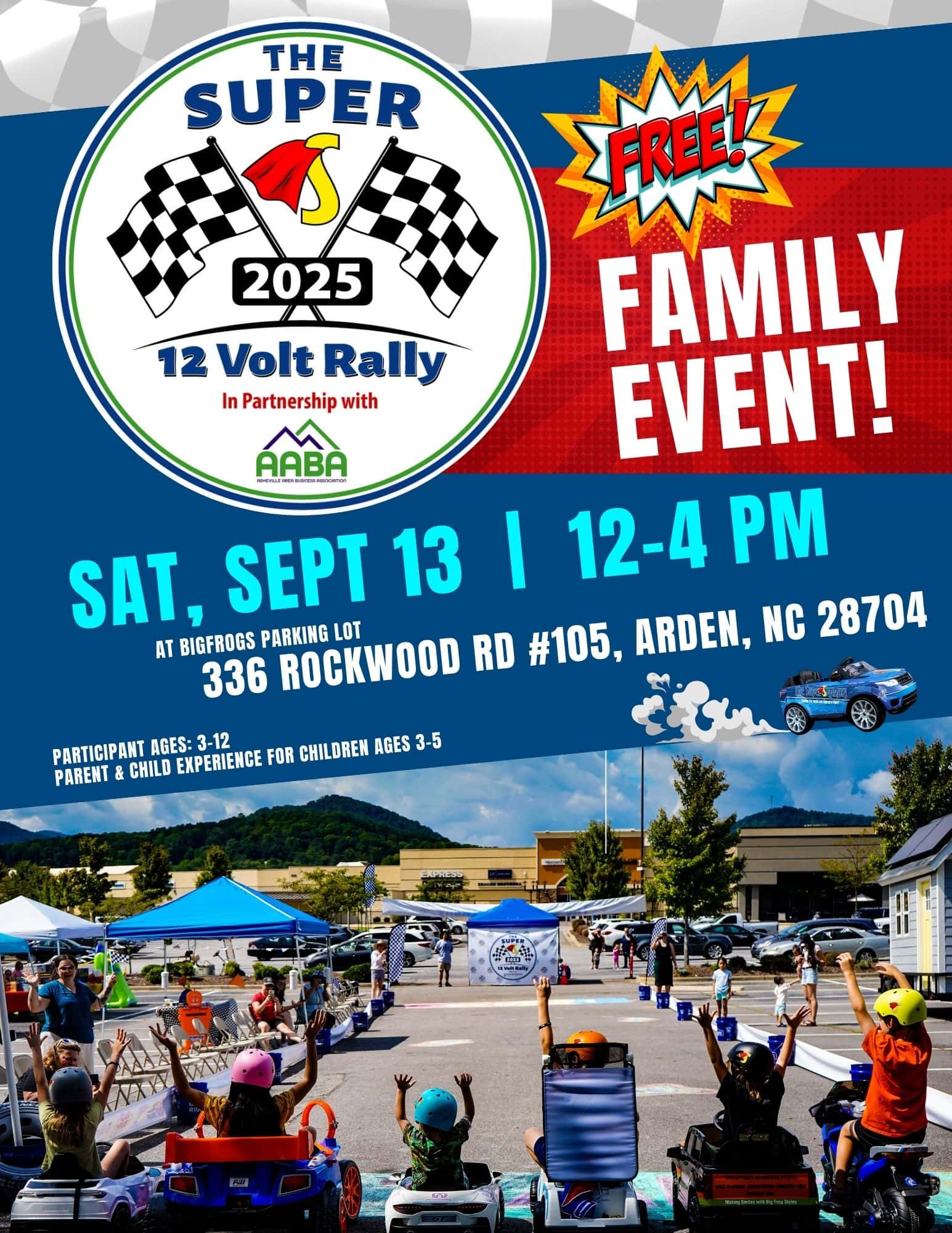 Welcome! to the 12 Volt Kids Rally and Race, a FREE FAMILY EVENT of high-energy, family-friendly event where kids race 12-volt power wheels cars and trucks—fully decked out with sponsor logos and custom graphics!
